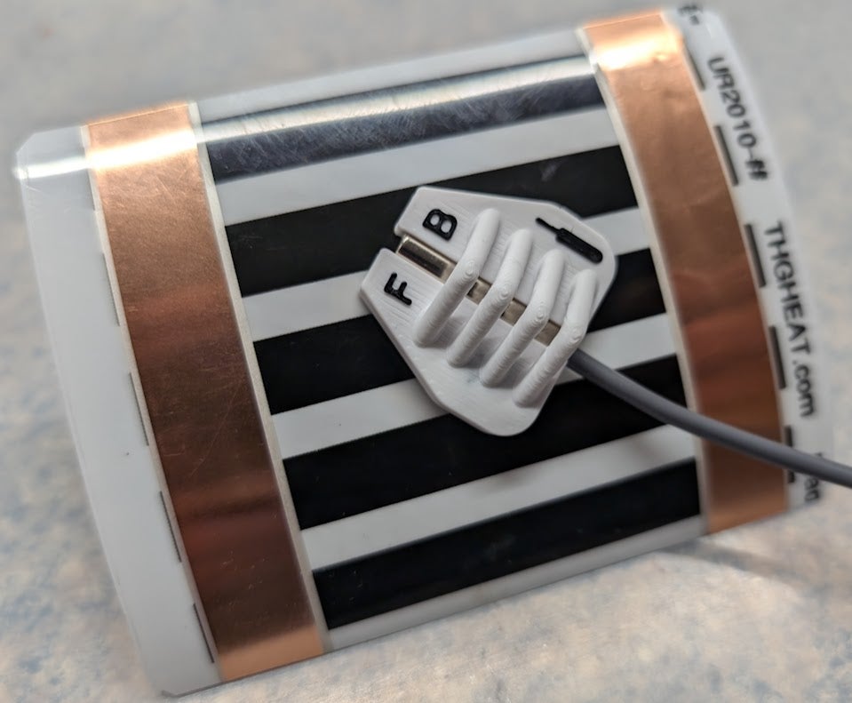 Designed specifically for the Freedom Breeder brand temperature probe. This clamp has custom geometry that securely and precisely secures the probe to the heat panel. The clamp is secured with embedded magnets, no adhesive required.